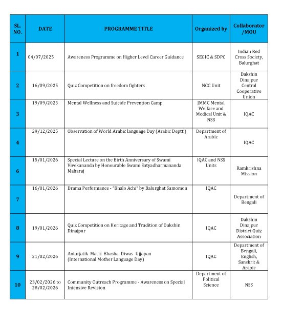আগামী ২১/০২/২০২৬ (শনিবার) মহাবিদ্যালয়ে আন্তর্জাতিক মাতৃভাষা দিবস উপলক্ষে আলোচনাসভা ও সাংস্কৃতিক অনুষ্ঠান পালনের বিজ্ঞপ্তি।