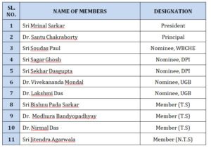 The Governing Body forms the basic backbone of the college. It is the highest body pertaining to the administration of the college headed by the President – Shri Mrinal Sarkar. The GB has currently been reconstituted on January 2018, constituting of stalwarts from all walks of life. In a very short time it has propelled the college to achieve new heights in terms of infrastructure, administration and academics.