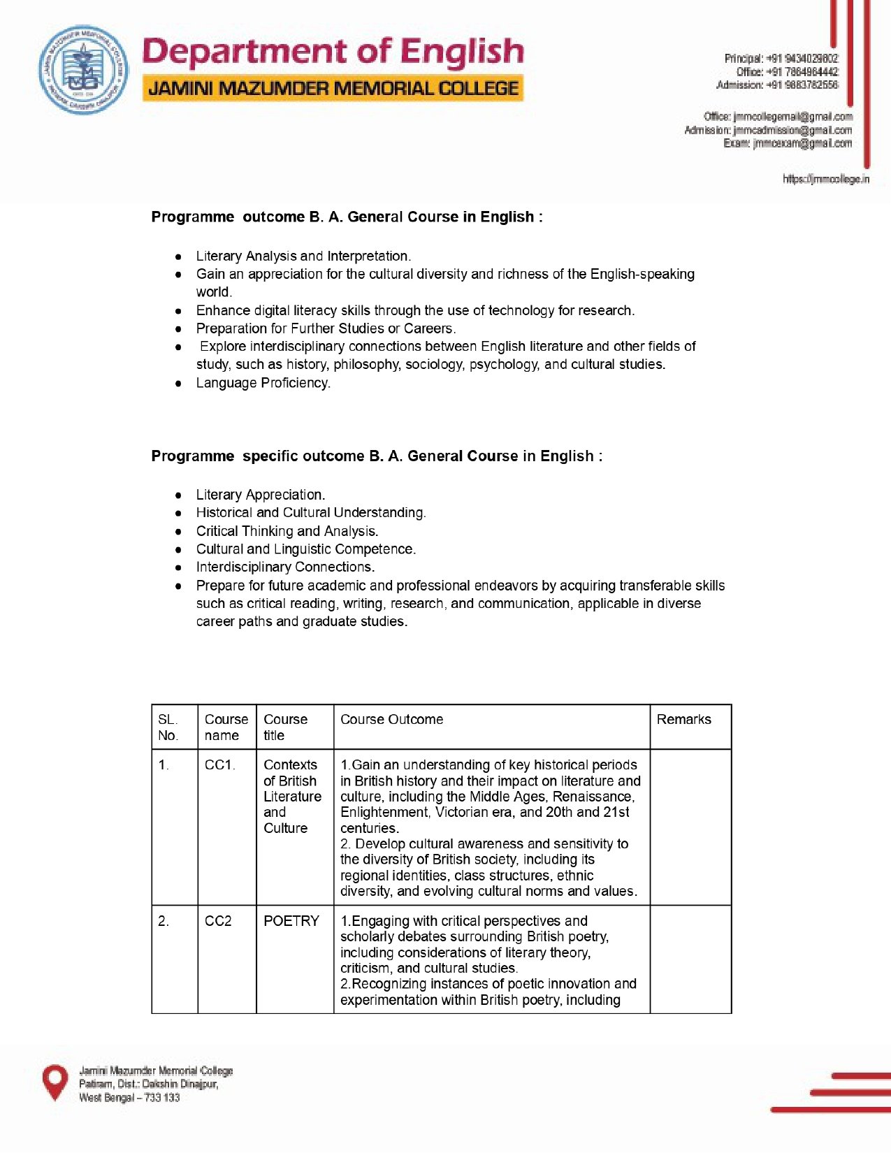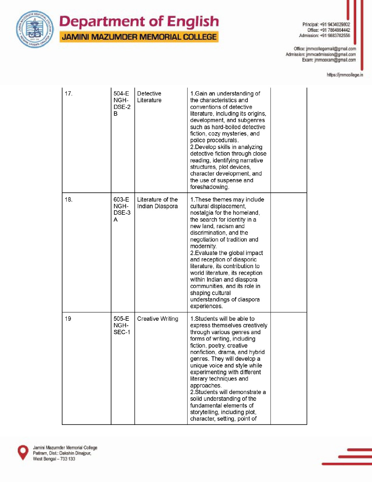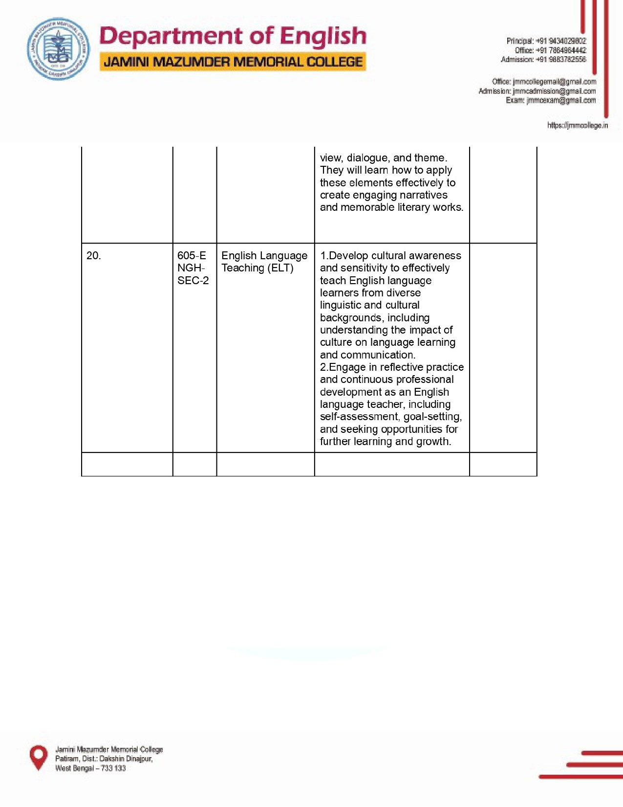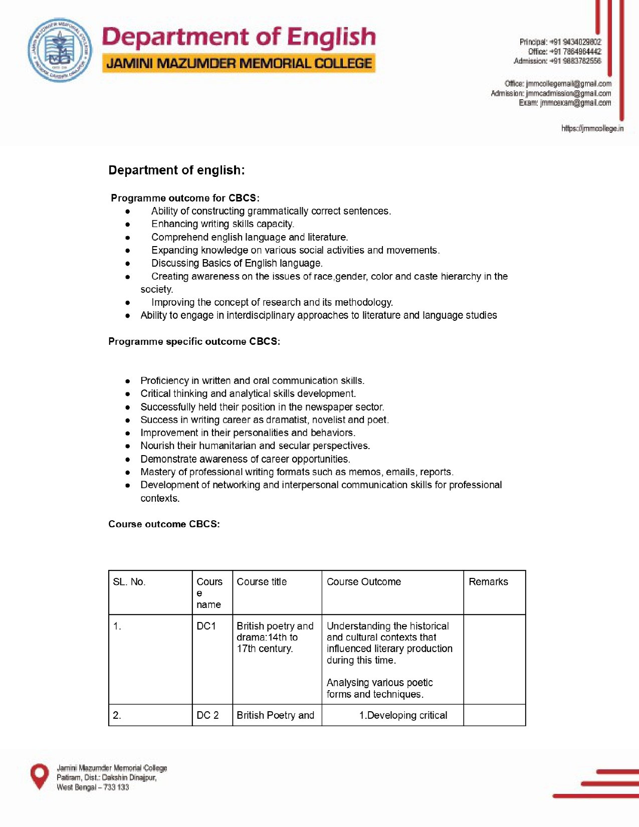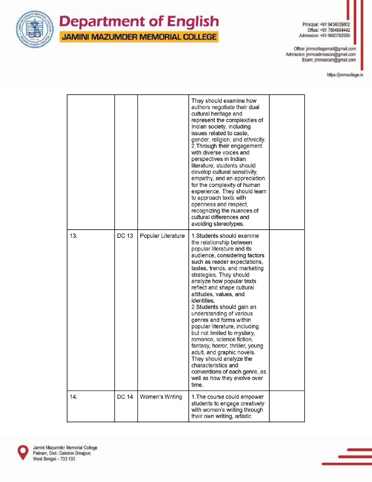 The Department of English is one of the most accomplished of all departments that the college boasts of. Apart from rigorous academic training we keep in mind the true idea of education, therefore we strive to build the personalities of the students. Apart from social skills and we lay special emphasis on communication skills especially spoken English as it has emerged as a vital requirement for today’s career seeking generation. We are strict about our class timings and completion of syllabus. Besides we conduct Seminars, workshops, quiz , debate and cultural programs- including Departmental Fresher’s, Reunion and Farewell. The most interesting activities that the students love are The Departmental Exhibition and Annual Field trips or Excursion that the department hosts.